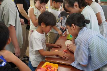 1年生が喜んでくれるような景品もたくさん作り、1年生も袋一杯の景品をかかえていました。