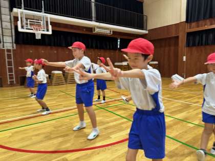 今日の体育の学習は,全校ダンスの仕上を行いました。