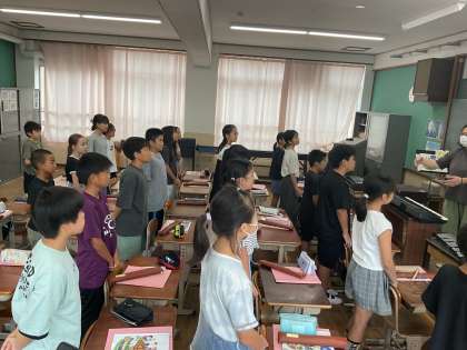 音楽科の学習の様子です。音楽室に行ってみると、1学期よりも美しい歌声が鳴り響いていました。担任も思わず拍手をしたくらいです。今後がさらに楽しみです。