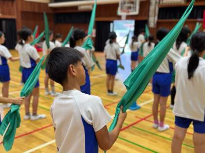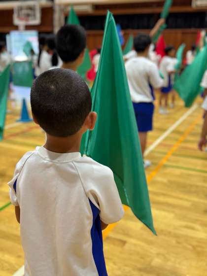 旗を手にした5年生は大喜びです。嬉しそうに旗を抱いていました。
