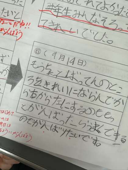 今日頑張ったところや,今日出来なかったところをどうすれば出来るようになるのか…