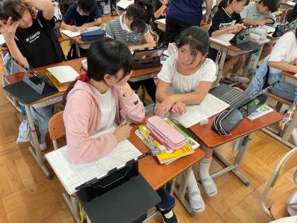 漁業生産量は、なぜ減っているのかを交流している様子です。
