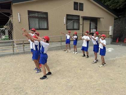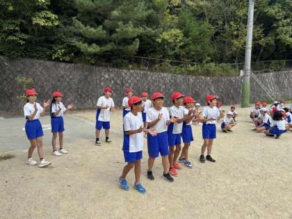 6年生が100m走をしている間に5年生の応援団は、応援合戦をしていました。