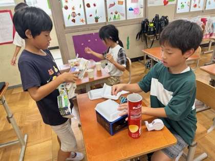 空き容器を使ったおもちゃ作りがようやく完成しました!