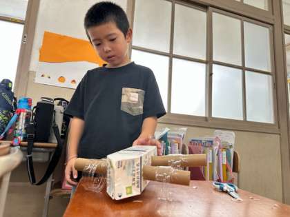 友だちと楽しく話しながら,相談しながら作ってきたおもちゃが完成しました。