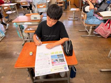 「水産業のさかんな地域」の学習が終わったので、テストを行いました。資料をよく見て問題を解いていました。