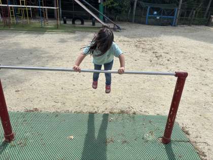 「てつぼうでぶたのまるやきをがんばりました。たのしかったです。」