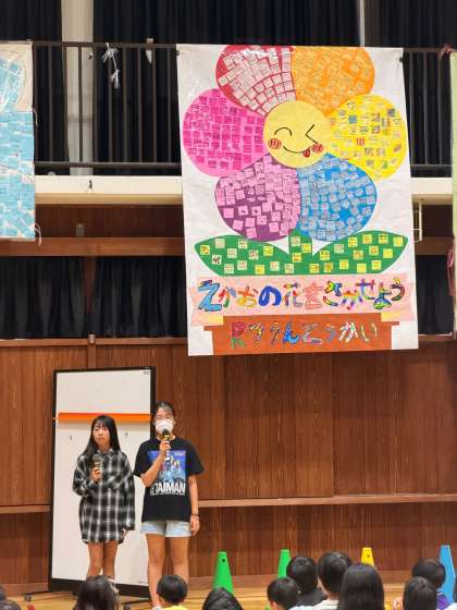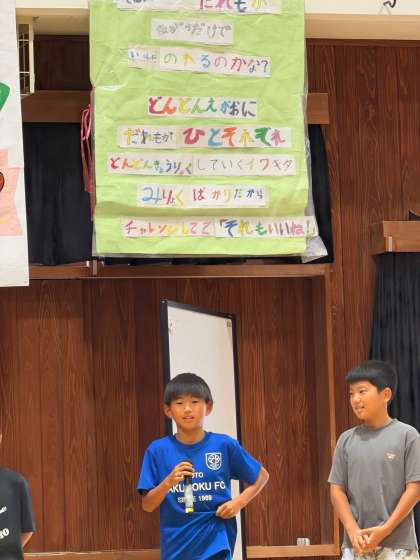 全体の前で、学年の一人が運動会を通して感じたことや学んだことを伝えました。