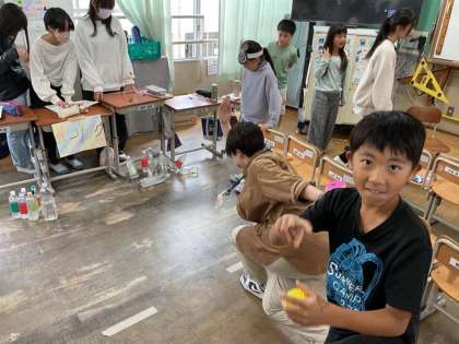 「ボーリング」と「ボールを穴に開けて得点を稼げ」のお店の様子です。