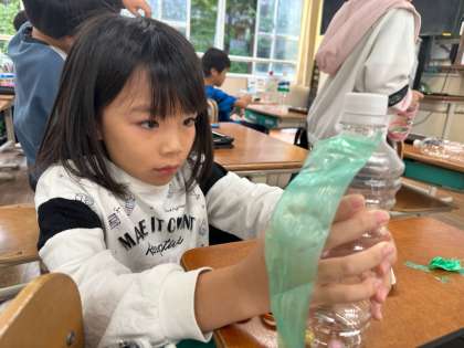 自分が作った楽器に一生懸命にかざりを考えてつけています。