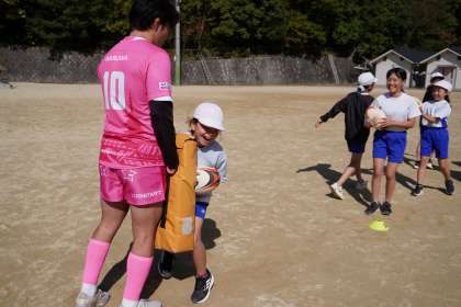 タックルの体験もさせていただきました。