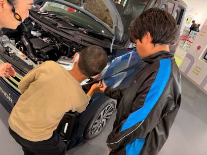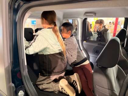 課題がそれぞれのグループに課され、それを解決すべく車の中や外をよーく見て検査をしました。見事、全グループ課題を合格しました!!