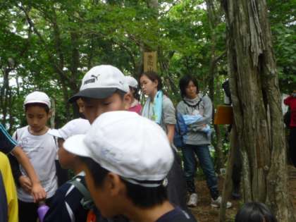 ついに911mに到達。みんなで,頂上にゴールした喜びを確かめ合いました。そして,下山コースに入ります。上りから開放され,気持ちが少し楽になるかと思いきや,過酷な下りが待ち構えていました。それは,急な坂+川越えコースだったのです。