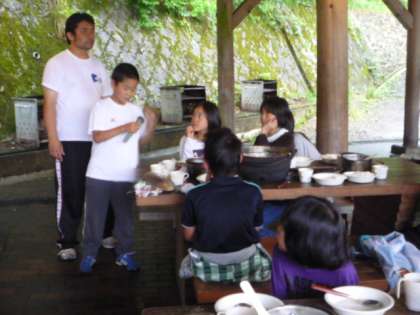 ご飯も炊け,それぞれのおかずも揃いました。今から試食タイムに入りますが,それぞれのグループから,マイグループのおかずのCMを発表し,みんなにアピールしました。「いただきます」の挨拶のあと,グループ内で半数ずつ,自分が食べたいグループに行って,そのおかずを試食しました。どのグループが作ったものも最後には完売しました。口々においしいと言いながら,互いのがんばりを認め合っているかのようでした。
