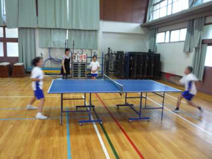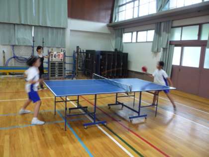 毎週金曜日の放課後に卓球部が活動しています。今日は,時間割の都合で,4年生だけの練習となりました。体育館へ集合すると,ストレッチを始め,その後はペアを見つけて乱打です。今日は,相手と息を合わせて続ける練習をしました。