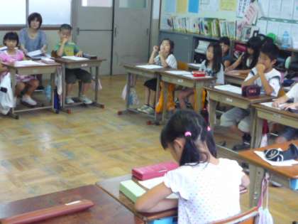 夏休み到来に向け,5校時には町別集会を行いました。6年生が1年生を迎えにいき,ようやくみんな揃って町別集会を始めます。町別集会では,夏休みの過ごし方をはじめ,地域での危険箇所も十分確かめ合い,安心安全な夏休みが過ごせるよう,PTA地域委員さんも交えて話し合いました。また,夏の地域行事(ラジオ体操・地蔵盆・夏祭り等)の紹介もあり,夏の楽しみがまた増えました。