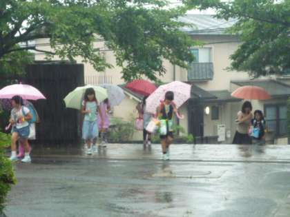 今朝は,あいにくの雨。それも,けっこう雨足も強く,長靴が活躍できそうなぐらいです。一昨日から始まった「あいさつ週間」も,ちょっと一息。午前8時を過ぎると,子どもたちは,元気に登校して来ました。「お早うございま〜す」「今日も元気に過ごしましょう」