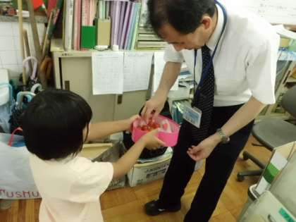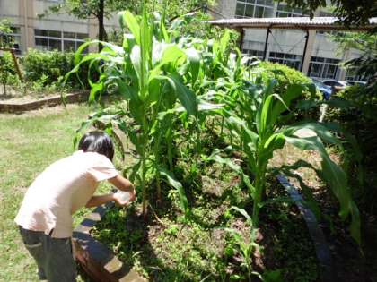 最近ととても天気が良いので,真っ赤なトマトがたくさんできています!3組だけでは食べ切れないので,職員室の先生たちに「トマトどうぞ!!」と言って配りました。トウモロコシもすくすく育っています!いつも休み明けの月曜日に「こんなに大きくなってる〜!」と驚いています!!水やりは一苦労ですが・・・。