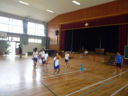 部活動全市交流会参加に向けて,卓球部・バスケットボール部の子どもたちが,サマースクール(学習)のあと,体育館で汗を流しました。卓球部は,8月8・9日(伏見港公園体育館),バスケットボール部は,8月7日(京都市立体育館)に,それぞれの全市大会が予定されています。