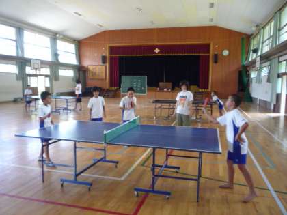 今日は朝の9時から,卓球部が全市交流会に向けて汗を流しました。公式戦を想定し,試合形式(リーグ戦)も同じにして練習しました。体育館とはいえ暑いので,水分補給も十分にしながらがんばりました。
