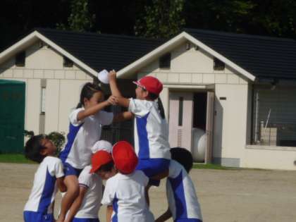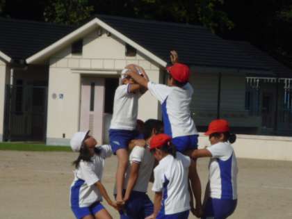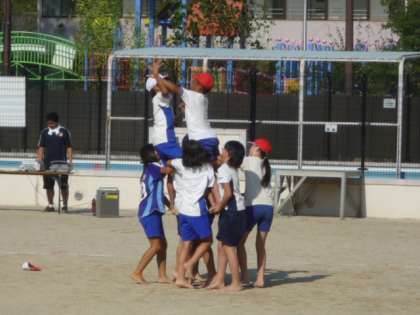 5年生の騎馬戦練習を,運動場で行いました。全校練習のあとの6校時でしたが,子どもたちは真剣勝負でがんばりました。一騎打ちでは,騎馬の距離が近づくごとに緊張感が高まります。勝負は一瞬で決まることが多く,お互いに油断禁物です。さすがに高学年。運動会当日,女神は,赤白どちらに微笑むのでしょうか。