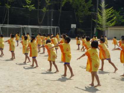 4年「舞え!ソーラン!心を一つに(団体演技)」,運動場で元気いっぱいに「ソーラン節」を踊りました。ソーランの特徴は,魚網を力いっぱい引くという力強い踊りです。大きな動作と共に,大きな声も張り上げ,全力でがんばっています。今週,調達した黄色のはっぴをまとい,やる気満々です。いよいよ明日です。