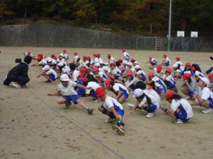 11月27日実施予定の校内持久走大会(通称:坂原マラソン)に向け,3・4年は,合同体育で試走しました。はじめは,走行中の諸注意(特に安全面)を聞き,ウォーミングアップ。そして,いよいよ試走開始です。先に4年生が元気にスタートし,その1分後に3年生が勢いよくスタートしました。走るまでは寒そうな様子でしたが,走り始めると,みんな一生懸命。寒風にも負けない走りっぷりでした。