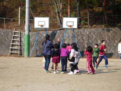 朝から気温が上がらず,冷たい一日となるかと思いきや,休み時間になると,多くの子どもたちが運動場に飛び出しました。おにごっこ・なわとび・ドッジボール・サッカー・遊具あそび…。とにかく,運動場は子どもたちで大賑わい。担任の先生も子どもたちと一緒に楽しそう…。休み時間の途中には日差しが差し込む穏やかな天気となりました。