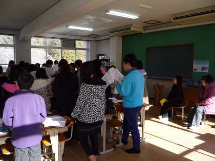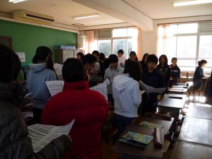 卒業式に向けて,歌の練習を進めています。今日の音楽の時間には,「旅立ちの日に」を歌いました。全員でパート別に向かい合い,しっかり歌いました。この曲は,多くの学校の卒業式で歌われている曲ですが,いつ聞いても卒業が迫ってきたことを感じずにはいられない曲です。いよいよ卒業までは,あと37日となりました。充実した日々を送ってほしいです。