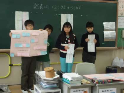 先週, 5年生では,エコチャレンジ学習会を行いました。冬休みにエコに取り組んでがんばれたことと,がんばれなかったことを班で出し合い,これからどのように取り組んでいくべきかについて考えました。環境の取組は,一人だけががんばっても大きな力にはなりません。自分が実践し続けていくことと同時に,学んだことをできるだけ多くの人に伝えていくことが大切です。地球全体のことを考え,行動できる人になってほしいと思います。
