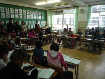 本日,4〜6年生を対象とした,学年末参観懇談を実施しました。各学級ともに多くの保護者の方々に起こしいただき,子どもたちも張り切って授業に臨みました。6年生は,社会科で,国際社会とのつながりを学習しました。今回は,中国との関係を見つめ直しました。特に文化では,深いつながりがあることを実感しました。5年1組は,外国語活動を行い,楽しく元気に進めることができました。5年2組は,日本の工業について,工場の立地条件について,様々な観点から意見を交流しました。4年生は算数科の学習をしました。「変わり方」を調べてという単元で,ともなって変化する2つの量に着目し,その関係を式に表すというものです。ペアで考えたり,小グループで話し合ったりしながら,進めていました。また,体育館では,今日・明日の2日間,校内作品展(8:00〜18:30)を開催しています。合わせて,ご覧ください。