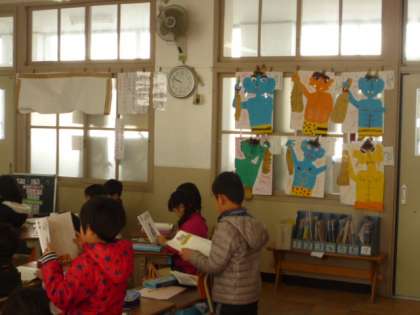 保護者の皆様におかれましては,昨日は1-1の学年末参観・懇談にお越しいただき,有難うございました。さて,既にお気づきのこととは存じますが,1-1教室前の廊下や教室内に飾られている個性的な鬼。過日の校内作品展に展示したものですが,廊下や教室で目の当たりにすると,迫力満点。と同時に,優しく子どもたちを見守ってくれいるようにも見えます。いよいよ学年末,今年度のまとめを確りしていきます。