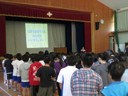 ゴールデンウィーク明けの火曜日,全校朝会を行いました。