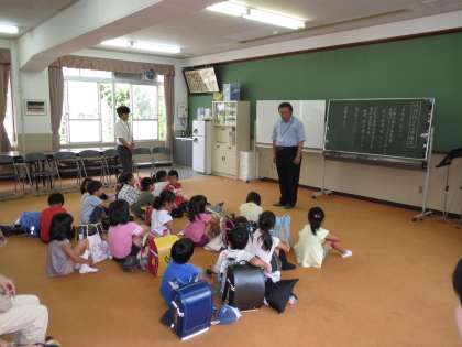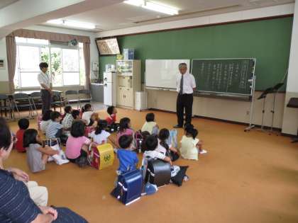 開講式を行い,放課後学び教室でがんばってほしいこと,学び方などのお話をしました。