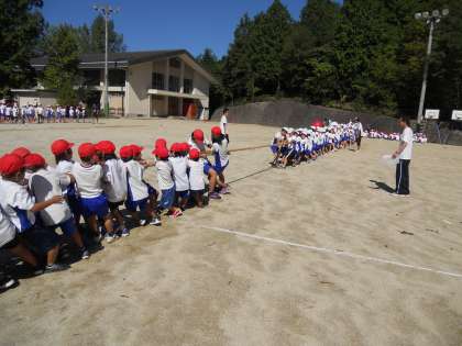 全校練習の2回目です。児童会種目別に分かれて,その内容の説明を聞くところから練習が始まりました。運動場の中央で順番に本番さながらの競技を行いました。まず,大玉おくりです。簡単そうですが,2人で協力しないとまっすぐに球が進みません。球を押す力の加減をつける感覚を確かめていきました。次に,綱引きです。今回は1〜6年生まで全員で綱を引きます。姿勢を低くして綱に力を込めていきました。最後に,リレーです。バトンパス,コース取りなど工夫するところがたくさんあります。