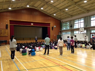 今年度初めての避難訓練がありました。警報機が「ジリリリー」と響きわたり,1年生はさぞかしびっくりしたことでしょう。みんなきちんと並び,口にハンカチやタオルをあてて,安全な方法を考えて,静かに避難することができました。日ごろから2列で素早くきちんと並ぶことや,話を聞くときには静かにするということができているからだと思います。今日は,教室にもどるときも静かなまま歩いていき,緊張感をもって行動できたことも良かったです。