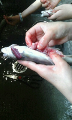 捕った魚はこのように自分たちでさばいて串焼きにします。