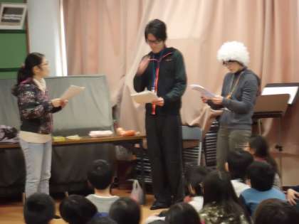 担任2人も,お母さん・子ども役になり,認知症のおばあちゃんに声かけする様子を演じました! 子ども達は,劇の中の様子から認知症のおばあちゃんに対して,どのような対応をすれば良いか考えました。子ども達からは,「メモを書いてあげたらいい。」など,認知症のおばあちゃんの立場になって考えた意見が出ていました。