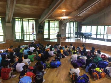 4泊5日、お世話になった花背山の家ともいよいよお別れです。楽しい思い出や自分の成長をふり返りながら、山の家のみなさんに感謝の気持ちを伝えました。