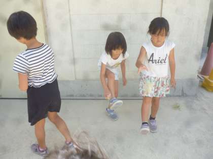 その中で,お隣の国の韓国を学習しました。韓国の遊びも日本の遊びと似ているものがありました。韓国の昔の遊びで「チェギチャギ」という日本の蹴鞠に似ている遊びを子どもたちと一緒に実際やってみました。