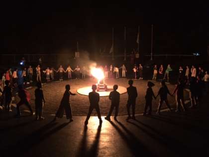 レク係の子どもたちが考えたゲームや合唱で盛り上がりました。