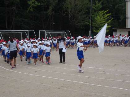 今日は心配された雨も上がり、運動会の全校練習を行うことができました。今年度は、昨年度まではなかった入場行進を行います。小学校に入って初めての経験とあって、今日の練習ではまだバラバラの様子です。本番までどこまでできるのか、挑戦です。