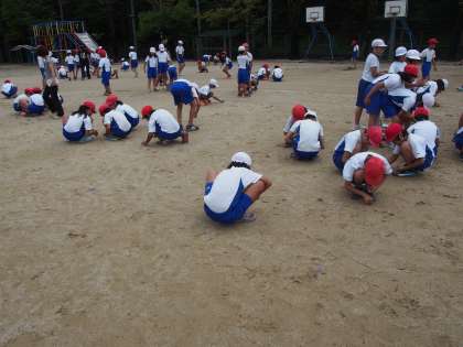 全校練習の後には、石拾いを行いました。裸足で行う5年生の騎馬戦や地面に膝をつける6年生のことを想い、それぞれの持ち場の小石を拾っていました。