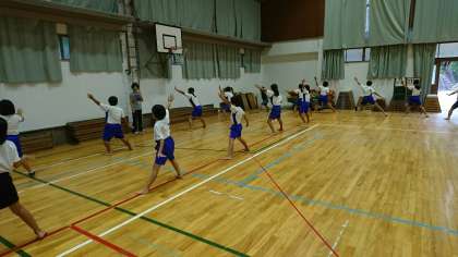 指の動きや腰の低さ,声などがんばらなければならないところがたくさんですが,一人一人一生懸命取り組んでいます。その取り組んでいる結果がしっかり踊りの中に表れ,4年生のソーラン節はどんどん進化していっているように思います。