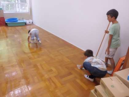 ほうきでごみ取り以外にも床の雑巾がけも毎日してくれるので,ピカピカです。たくさんお手本になる3年生がいるので教えてもらっているようです。