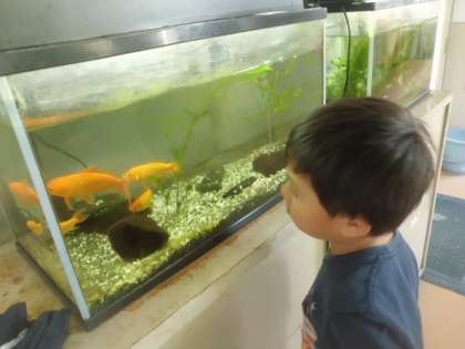 お魚はずっと見ていられるほど大好きです。目で追いながらうっとり見つめるこの時間が好きなようです。