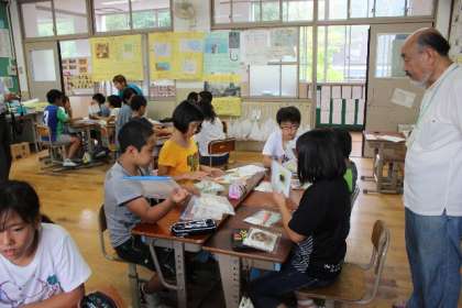 京都市環境保全活動推進協会の方に来ていただきフードマイレージの授業をして頂きました。食べ物が運ばれてくる過程でどれほどのCO2が出ていかを学び,子ども達は食べ物の選ぶときの判断基準として近くでとれたものを選ぶということも大切なのだと気付いた様子でした。環境のことを考える良いきっかけになったと思います。