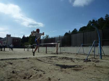 体育でははばとびに挑戦しています。最初は「片足踏み切り」→「両足着地」にも苦戦していた子どもたち。色々な方法で練習を重ね,どんどん上達してきました。もっと前へ,もっと遠くへ。子どもたちの挑戦は続いています。