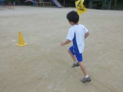 左京北支部の育成学級で集まって行われる「なかよし運動会」が近づいてきました。先日,岩北での運動会を終えたばかりですが,こちらの方の練習も頑張っています。これは3分間の持久走の練習をしているところです。音楽に合わせながら,走ることは好きなのでスピードをあげてみたりスキップしてみたり自分なりに楽しく走ることができています。