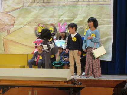 せりふと演技,どちらもグループで一生懸命考えて,役を演じます。毎日の練習で,少しずつレベルアップして堂々と演じてくれました。